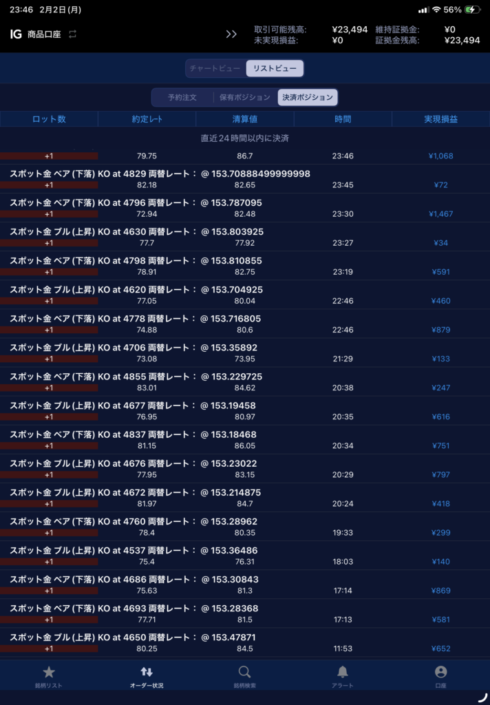 で、本日の残高は画像の通り ¥ 23494 で終えました。